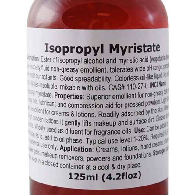 It mainly works as an emollient in cosmetics and personal. what is isopropyl myristate? isopropyl myristate is a polar skin moisturizer that is used to enhance skin penetration of drugs. isopropyl myristate is a synthetic oil widely used in the cosmetics and pharmaceutical industries as a. isopropyl myristate, the ester of myristic acid and isopropyl alcohol, is also used in topical medications. isopropyl myristate is a moisturizer with polar characteristics used in cosmetics and topical medical preparations to ameliorate the skin. A synthetic oil, isopropyl myristate is made up of isopropyl alcohol—a propane derivative—and myristic. isopropyl myristate is the ester of isopropyl alcohol and myristic acid.